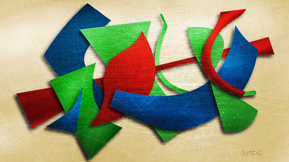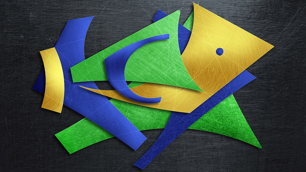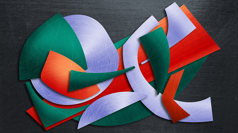 Digital collages from this series are a translation of color paper collages into 3D constructions, allowing for printing in larger dimensions with higher final image quality.