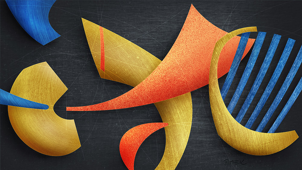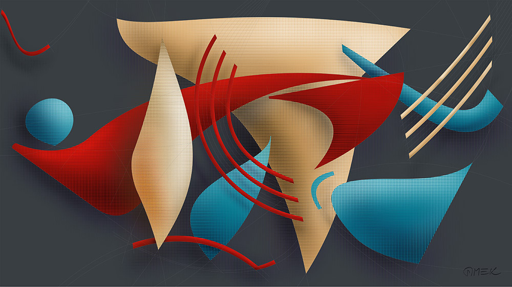 These abstract compositions are 3D constructions created based on sketches on paper. I aimed to achieve a particularly dynamic and unpredictable composition that resembles a record of dance or play.