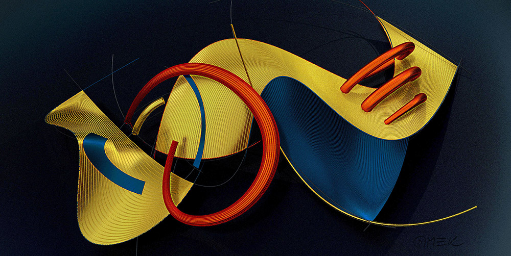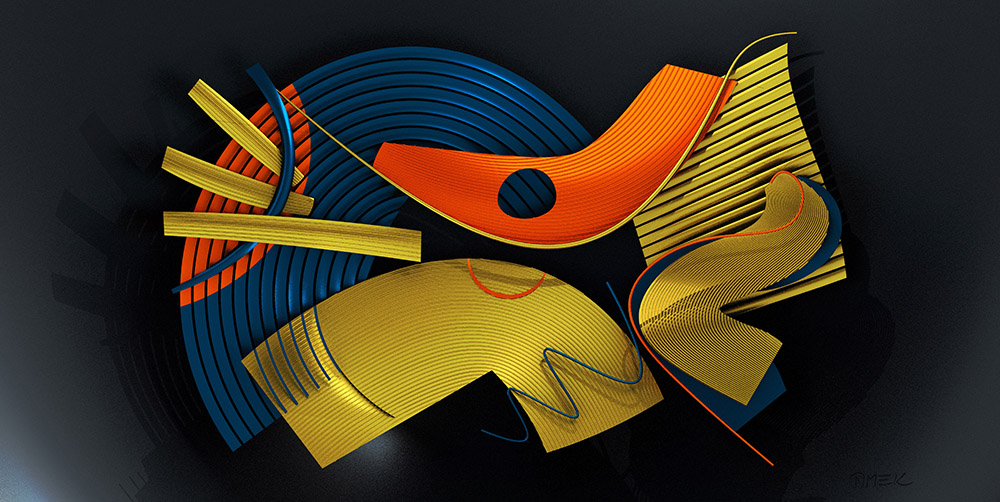 These pieces were created through construction in 3D software, based on various types of sketches and photographs. Besides being digital compositions, they also function as sketches for creating a metal sculpture.